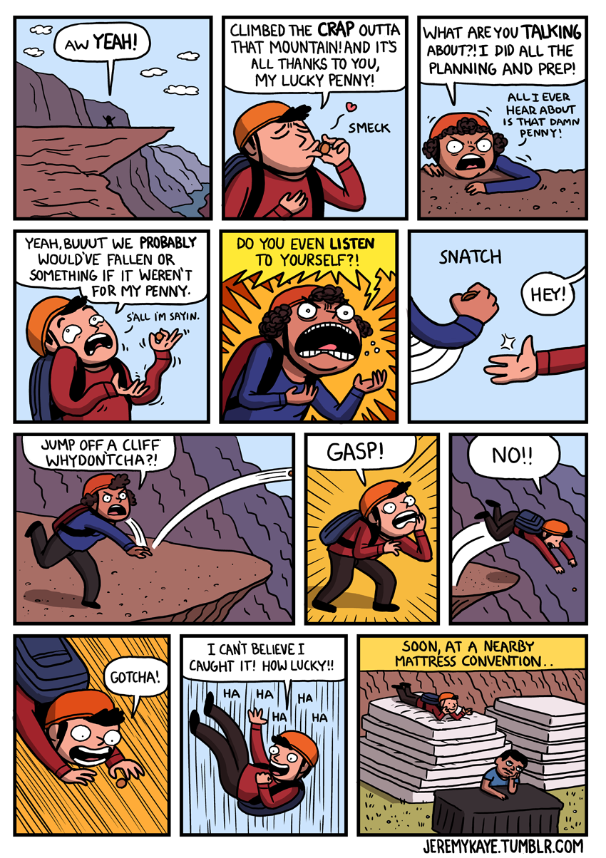 Here's a great comic from Up and Out, by Jeremy Kaye. Do you have a lucky paddle or item you take with you when adventuring?