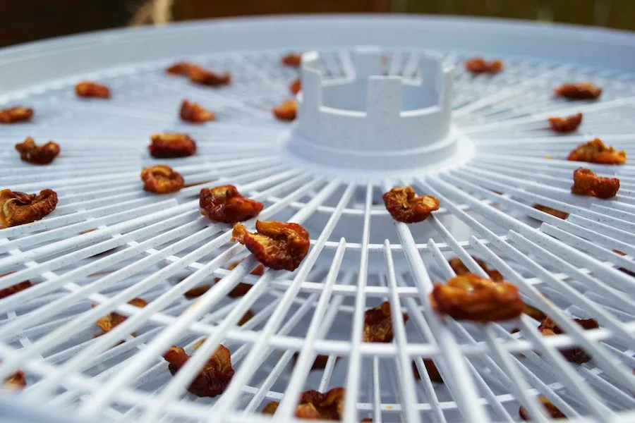 Lay them on the tray skin side down and dry at 55°C (130°F) for 12 to 24 hours