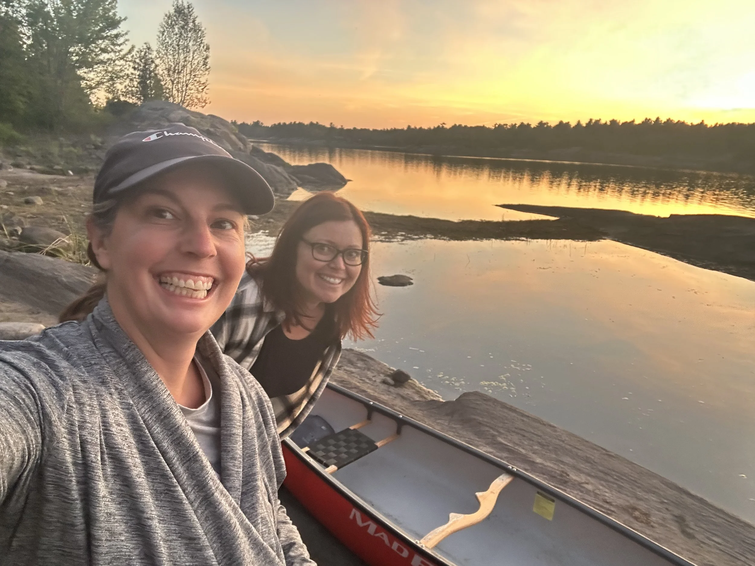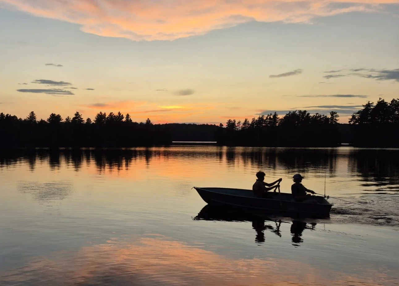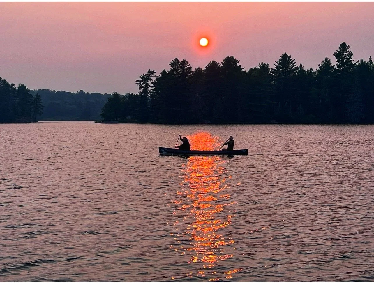 Lindsie Blencowe: 'm submitting on behalf of our Scout group - because we could always use gear! We've had an awesome 2025 full of backcountry camping. This picture is of two of our Mount Albert Venturers, trolling a line at sunset. Haliburton Scout Reserve, August 2025.