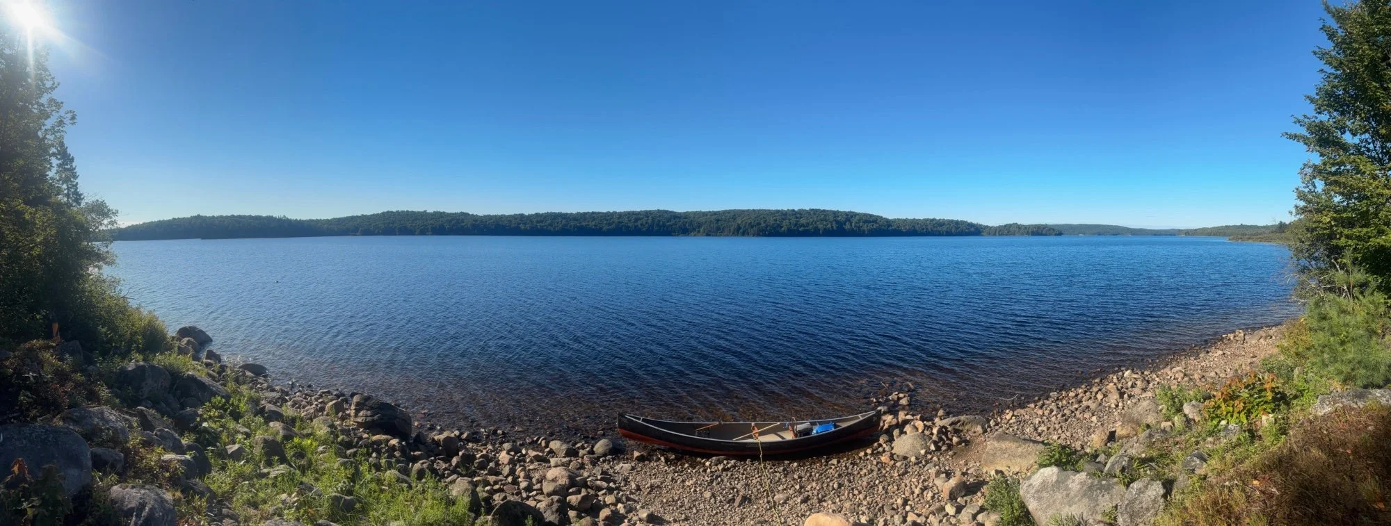 Gary Smith: Exploring campsites on Sucker Lake, part of Kawartha Highlands Provincial Park. Staying for a few days in September, 2025. I didn't realize that I left it in the water while checking out the campsite! Lucky for me that my canoe did not float away on me.