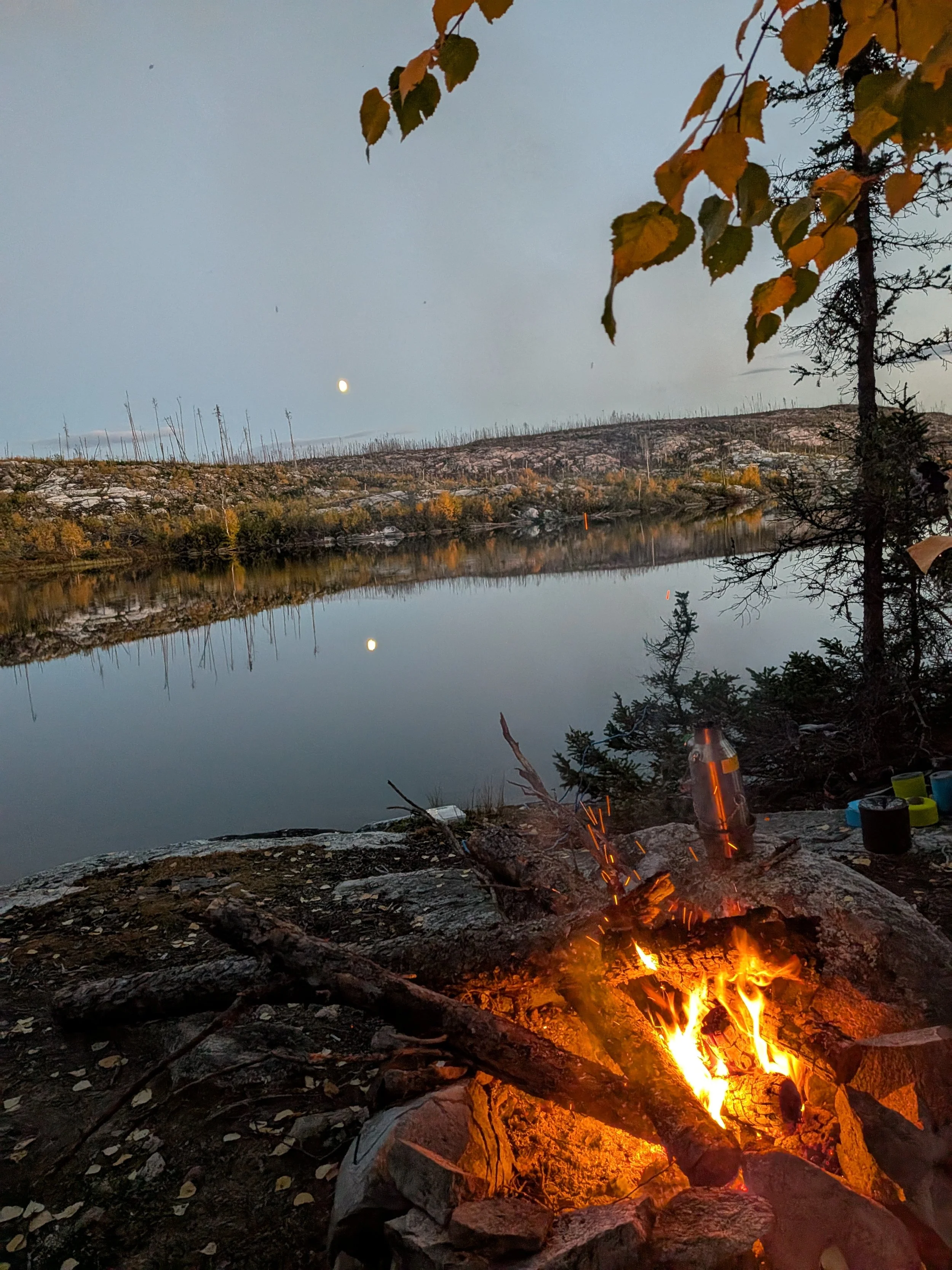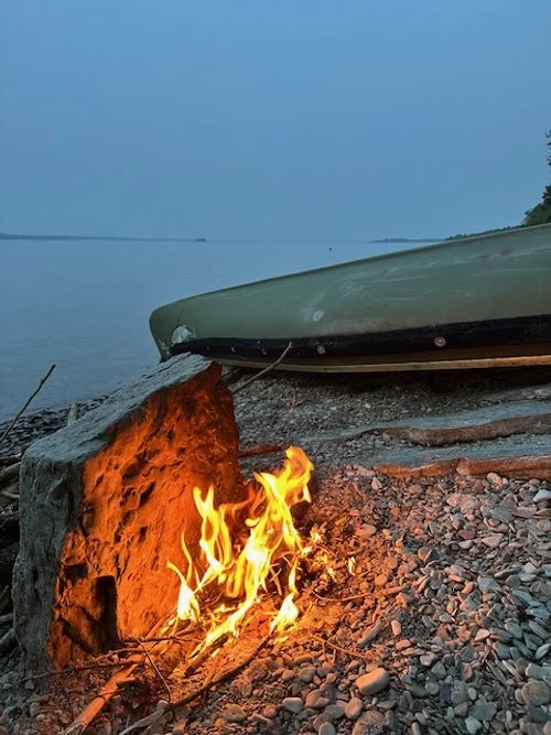 Josh Speena: Just a typical night backcountry in Killarney PP. Canoe, water, fire and gear.
