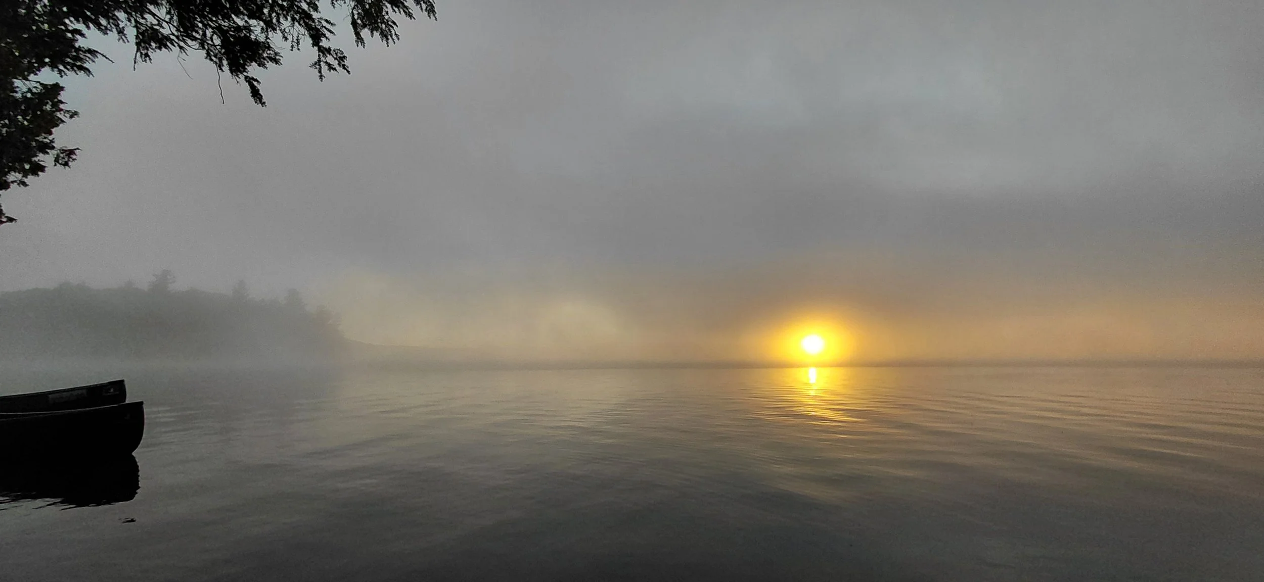 Gabrielle Choi: Taken on the last morning of a 5-day canoe camping trip in Algonquin Provincial Park in early September. We woke up before dawn to paddle out from Ralph Bice Lake, to get to Magnetawan Lake put in by 9:30am. This was the sunrise just before we started our paddle, accompanied by lots of fog the whole way.