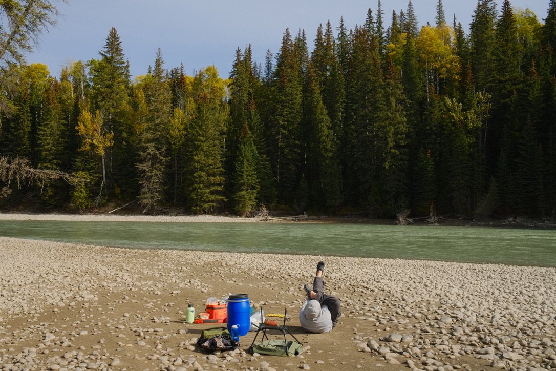 Angel C: Post-lunch leg stretches on a sandbar along the Athabasca River in Alberta during a three-day trip downriver in the fall. My friend (pictured) and I work as fire lookouts, spending about 160 consecutive days watching for wildfire smoke in the Rocky Mountain Foothills. The Athabasca River and its tributaries weave between our individual areas of responsibility, and it felt right to cap off our lookout seasons with a canoe trip on the mighty river!