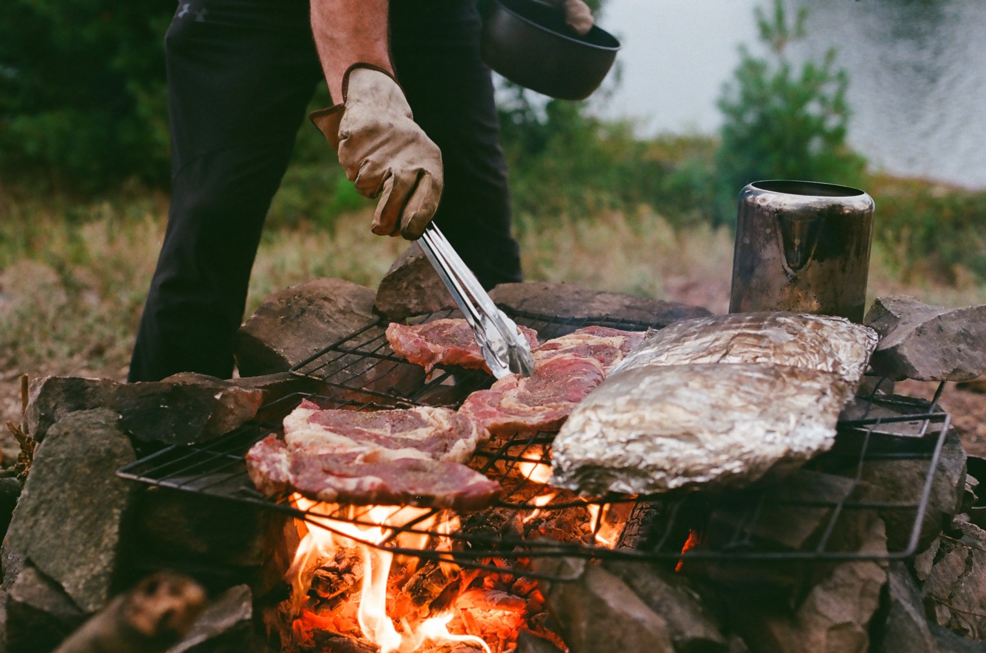 Jason Clarke: Steak and potatoes over an open fire. David Lake, Killarney Provincial Park
