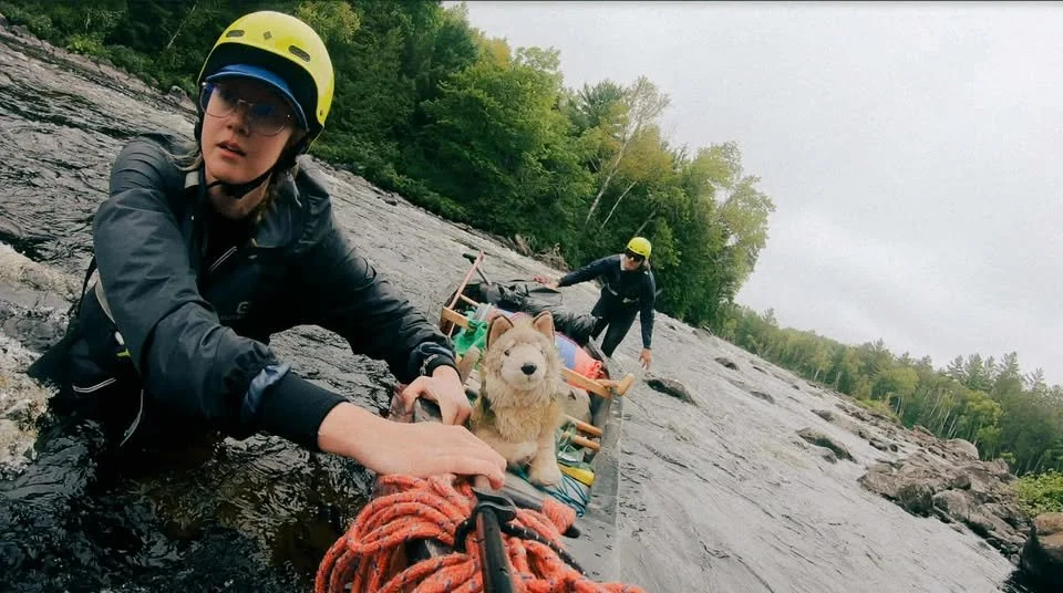 Jesse Wiesner: Wading a C2-3 on a week long trip with my wife and adventure buddy Buster - our biggest trip yet. On the Kipawa River, Quebec.