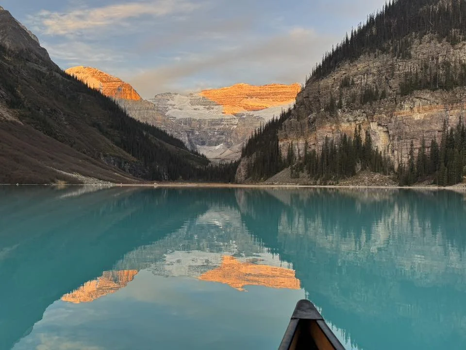Manon Ruel: Hello, I am submitting this photo to the contest. It was taken during a powerful moment on Lake Minnewanka while I was on a solo canoe and van trip. This journey began during a time when my life felt heavy and overwhelming. I had been carrying too many pressures for too long, and the loss of my five year old dog to a coyote became the moment that pushed everything over the edge. It was the tip of the iceberg in a period when I was already exhausted and stretched thin.