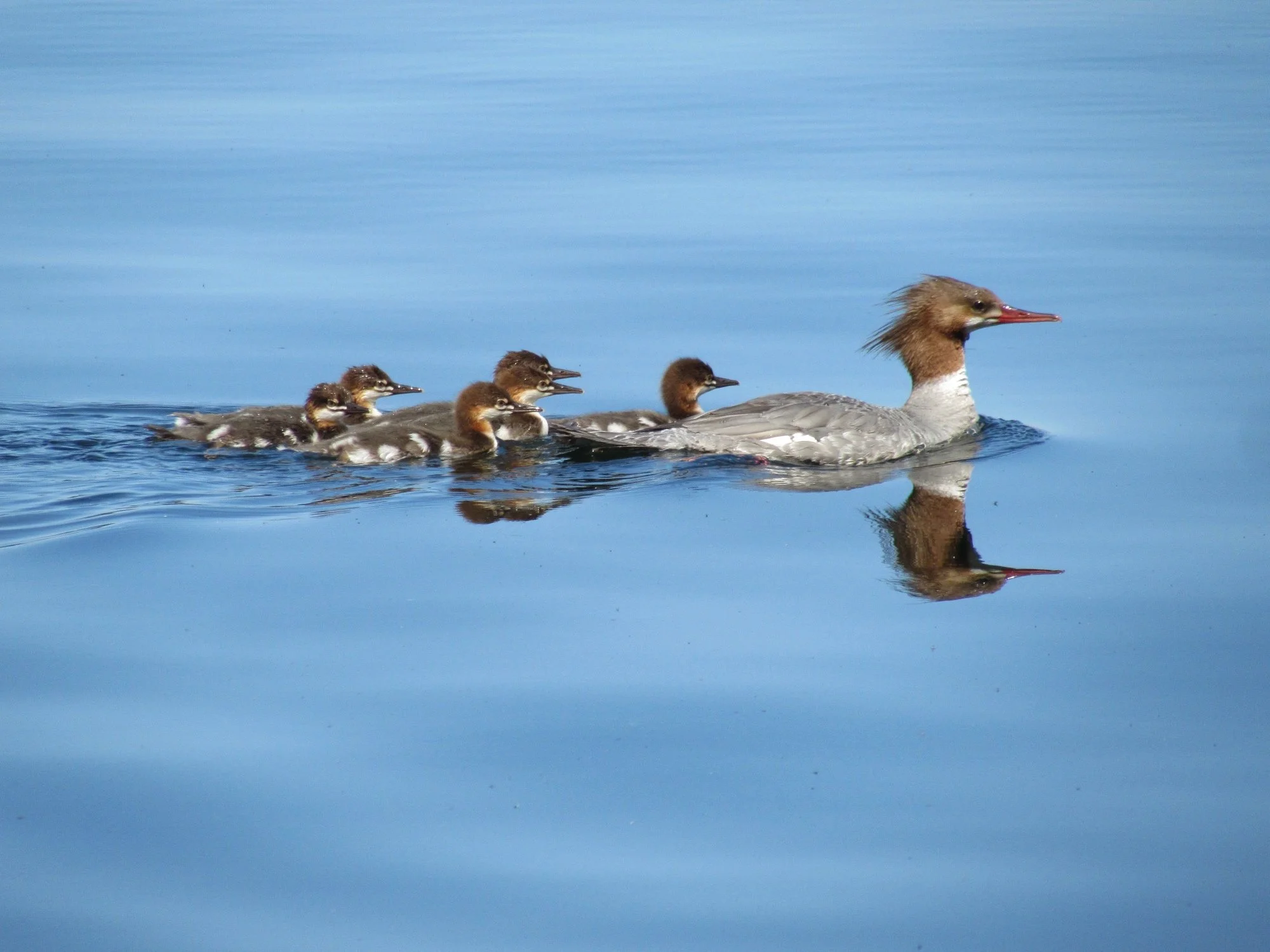 Steve Bobrowicz: "Seven Little Ducks that I Once Knew". A merganser family that paddled past our campsite on David Lake in Killarney last July.