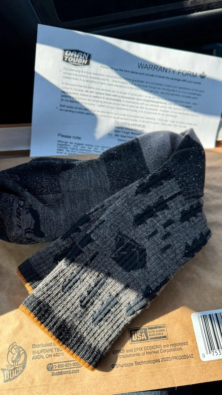 A little over a month later I got my brand new socks in the mail. They do their best to match up your pair with a current offering (the design might be slightly different) and now I’m ready to carry on adventuring knowing that I’ll have happy feet in the process. Thanks Darn Tough!