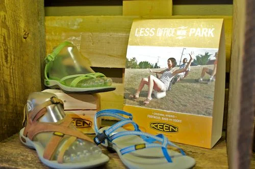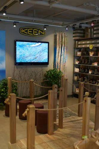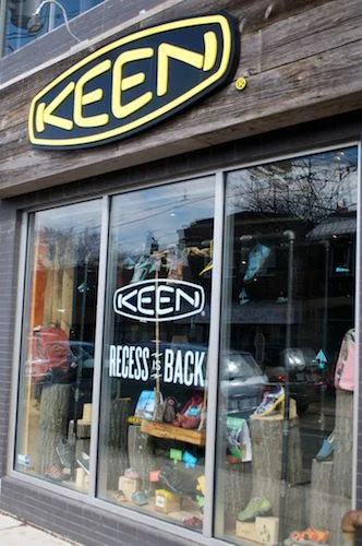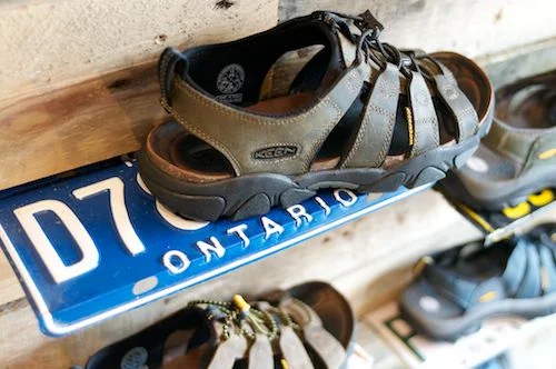 Keen has a gorgeous store on Kingston Road, just outside of downtown Toronto. It is the first Keen store in Canada and shows off the large selection of footware that they offer. The store is chock full of re-purposed items that catch your eye like the antique licence plates that show off their footware, or the old door that slides away to reveal their stock room. Try on a pair of shoes and walk along the indoor boardwalk to the stones to see how they feel which is also a tribute to the nearby "Beaches" in Leslieville.